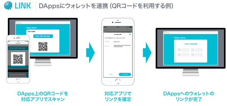 Google ChromeやSafari、Firefox、Microsoft Edge等の一般的なブラウザで「DApps」を利用する際、ブラウザ毎に秘密鍵を入力する必要があり、煩雑でセキュリティ面でも課題があった。しかし、「Quragé Link」をDAppsに導入する事で、どのブラウザでも秘密鍵を入力する事なくDAppsを利用できるようになる(DApps利用の際の課題を解決)。「Quragé Link」は特許出願も行った。