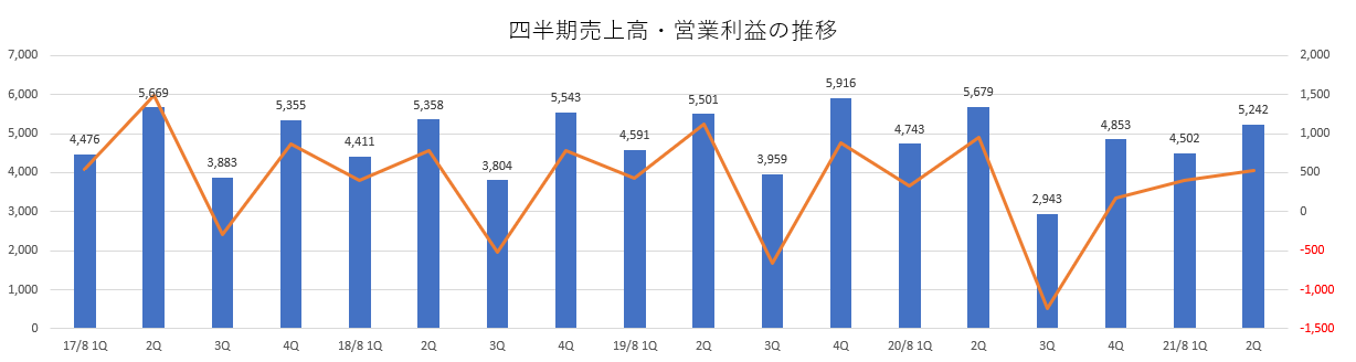 2021年8月(予) | 18,600 | 630 | 760 | 700 | 27.91 | 15.00 |