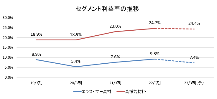 エラストマー素材事業 | 22,169 | 17,691 | 9,642 | 12,283 | 18,623 |