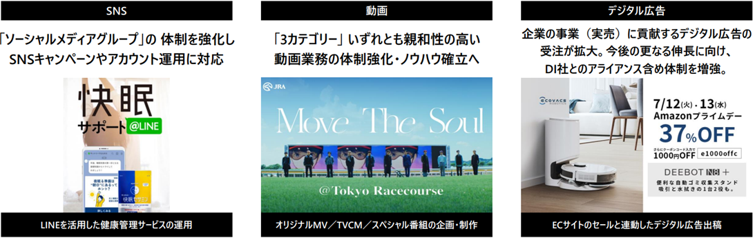 | オンライン領域拡張 | 重点領域「SNS」「動画」「デジタル広告」による領域拡張 |