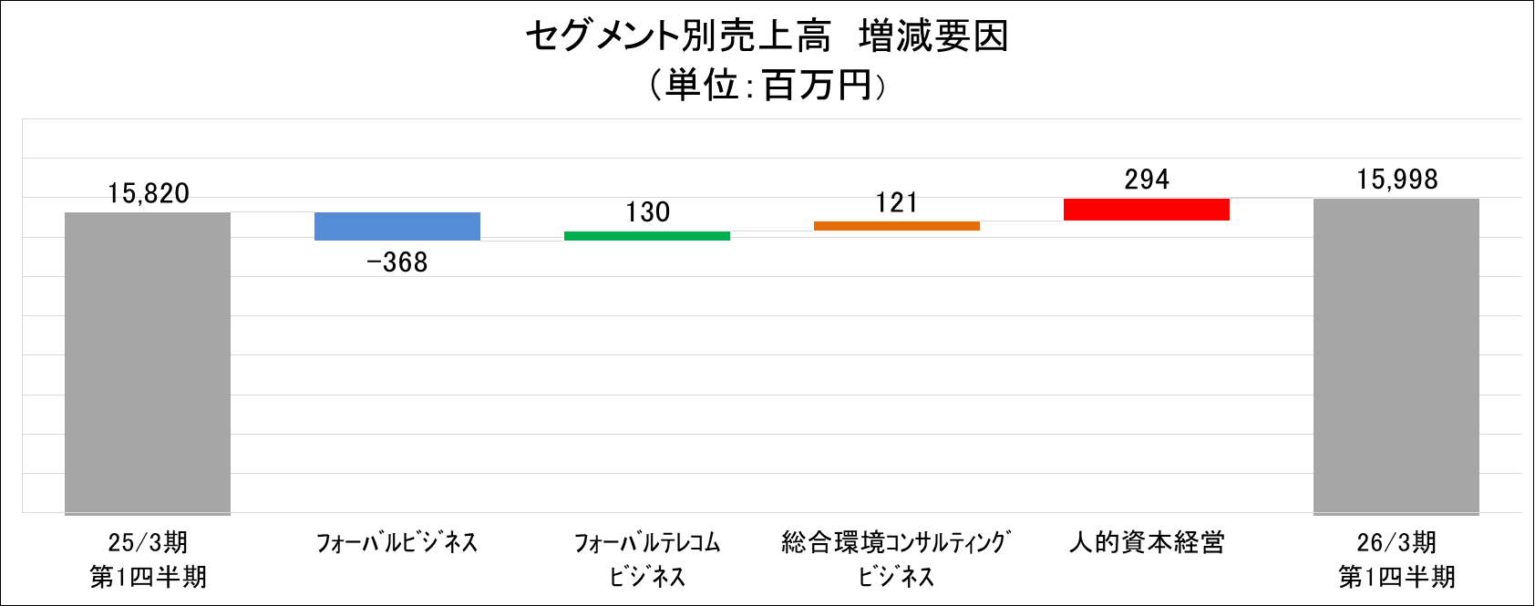 *26/3期第1四半期より、経営管理区分の変更に伴い、従来「フォーバルテレコムビジネスグループ」に区分していた子会社の一部について、「フォーバルビジネスグループ」へ報告セグメントの変更を行っている。なお、今第1四半期以前のセグメント情報は、当該変更前の報告セグメントの数値。