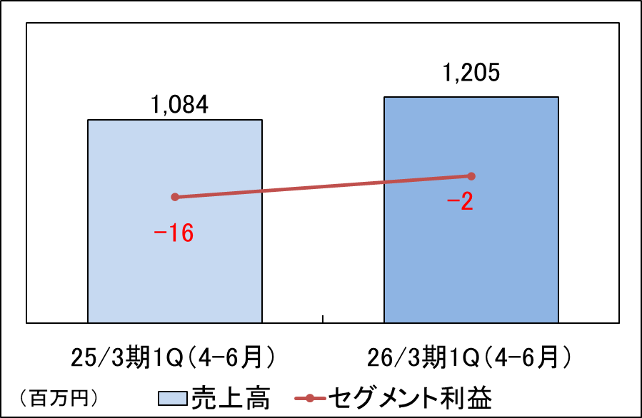 太陽光発電システムが増加した結果、売上高は12億5百万円(前年同期比11.2%増)、セグメント損失は2百万円(前年同期はセグメント損失16百万円)となった。