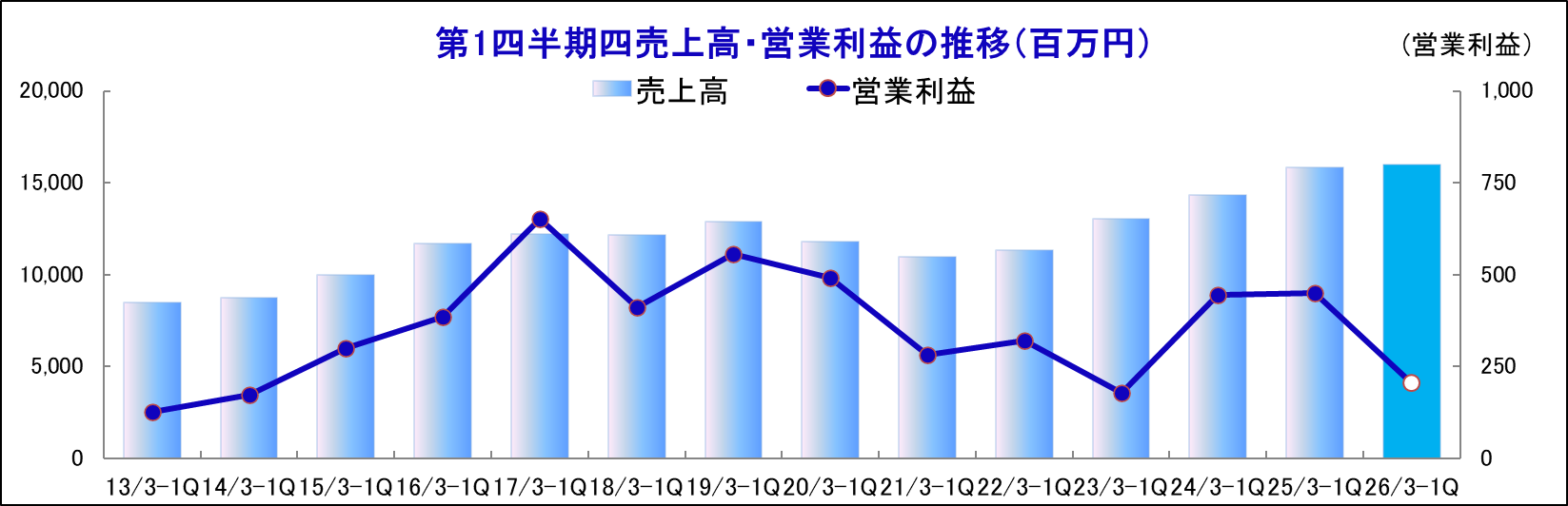 26/3期第1四半期(4-6月)は、過去の第1四半期と比較し、高水準の売上高となったものの、事業拡大に伴う人員増強や情報処理費、地代家賃やのれんの償却費の増加の影響により営業利益の水準は低くなった。