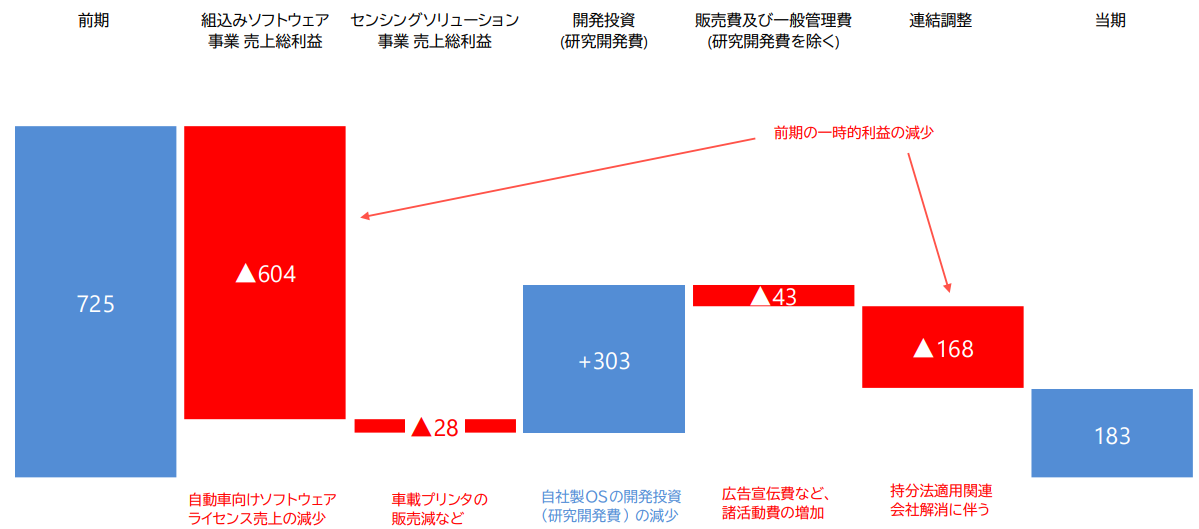 計画通りに進捗しております。ただし、前年同期には組込みソフトウェア製品において一時的な売上計上がありました。その反動などにより減収減益となっておりますが、エンジニアリングサービスは13.9%増収とオーガニックにはしっかりと成長が持続できています。