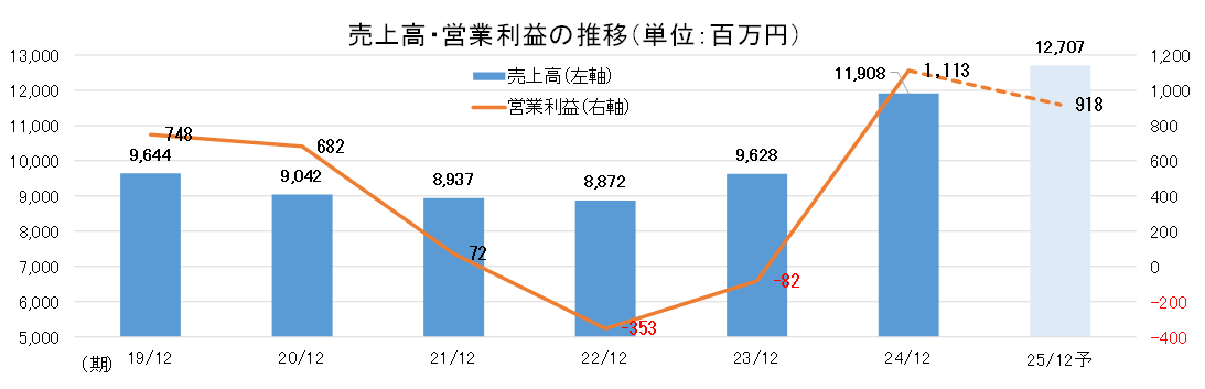 25/12期は、売上高が前期比6.7%増の127億7百万円、営業利益は同17.5%減の9億18百万円を見込む。一部の売上の下期へのずれ込みはあったが会社予想に対しては概ね計画通り推移しており、通期予想の修正はなかった。
