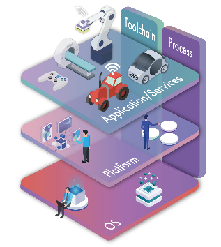 - 設立以来、組込みソフトウェア事業が主要な事業基盤。組込みソフトウェア事業は、国内外の顧客(自動車関連メーカー、デジタル家電メーカー、産業機器メーカー、医療機器メーカー他)に対して、ソフトウェアを基軸としたモノづくり(SDx)の実現に不可欠なプラットフォームアプローチとソフトウェアシステムの基盤層であるOS(オペレーティング・システム)から、ミドルウェア、プラットフォームアプリケーションそしてツールとプロセスまでのフルスタックの技術知見をソリューションとして提供する「フルスタックエンジニアリング」を積極的に展開している。