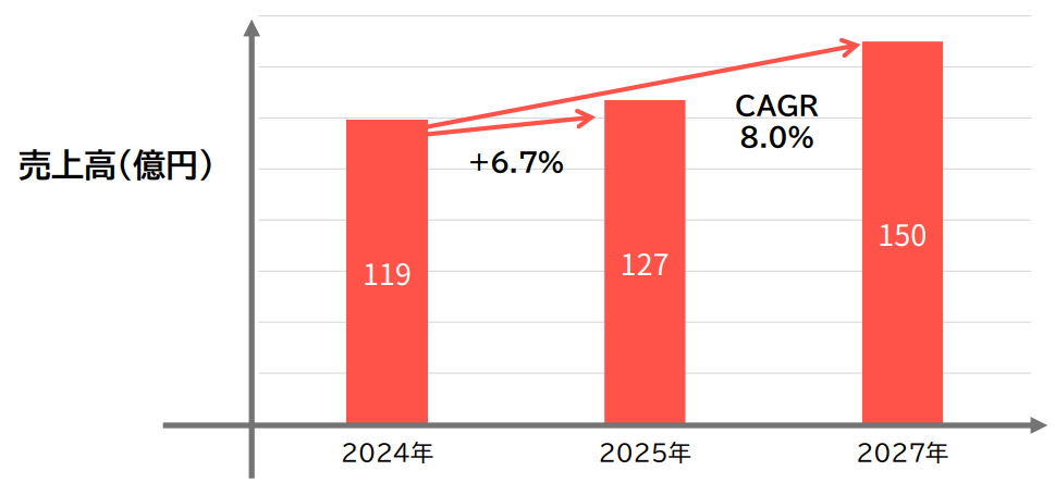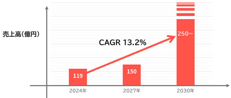 中期経営計画では30/12期までの売上高250億円以上を目指す。権藤社長は「将来的には1,000億円まではいきたい」とのコメントもあった。