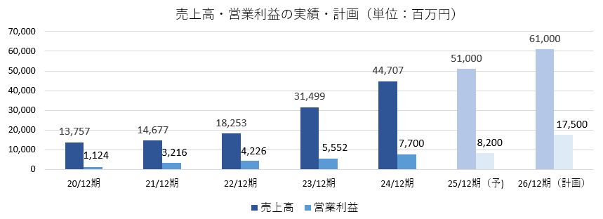 売上高 | 44,707 | 100.0% | 51,000 | 100.0% | +14.1% | 34.1% |