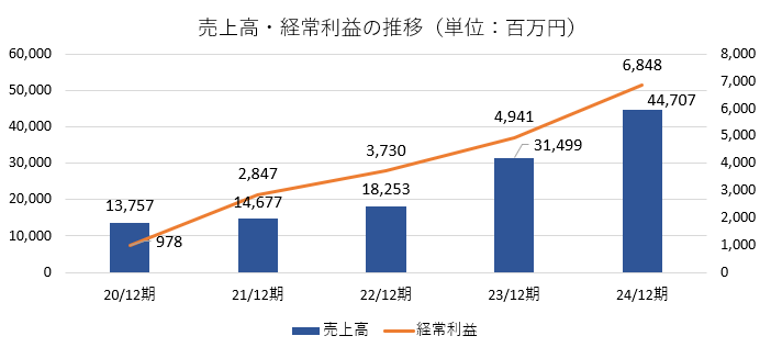 24年12月(実) | 44,707 | 7,700 | 6,848 | 4,713 | 759.38 | 292.00 |