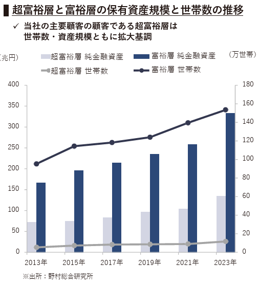 足元の金利上昇局面でも同社の主要顧客である超富裕層・富裕層は世帯数・保有する資産額ともに拡大。同社物件のターゲット顧客層は拡大傾向にある。