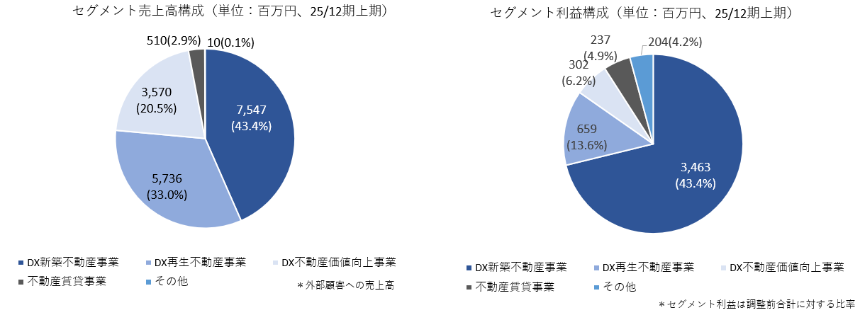 同社は2025年度を「成長加速フェーズ」の起点とし、さらなる飛躍に向けて事業を推進している。そうした中、これまでのセグメントである「新築不動産販売部門」における土地企画販売業務及び「再生不動産販売部門」におけるインベストメントプロジェクト業務の事業規模が拡大していることから、経営管理区分の見直しを行い「DX不動産価値向上事業」を新設するとともに、事業活動の実態を適正に反映させるため、2025年12月期より報告セグメントを変更している。