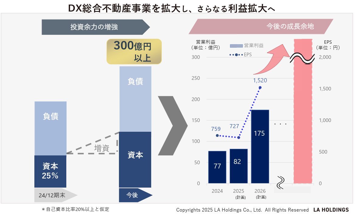 また、昨年の段階では開発規模を一気に100億円、200億円へと拡大させるのはそう簡単ではないと考えていましたが、公募増資の実施とそれに伴う金融機関によるクレジットの更なる引き上げにより、300億円以上の新たな投資余力を創出することができました。中長期的な成長力は更に強化されたものと考えています。