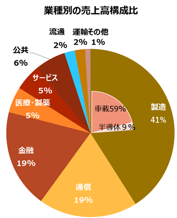 金融業、医薬・製薬業、通信業、流通業、運輸業等の幅広い分野において、エンドユーザーや顧客の情報システム子会社からの受託開発が中心。その他、大手SIベンダーからの受託開発も行っている。