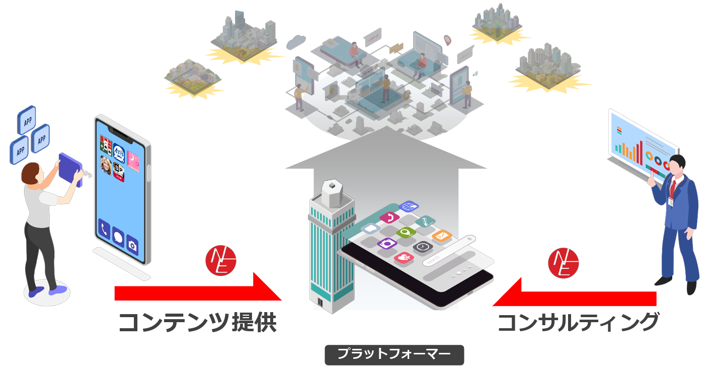 キッティング支援、交通情報、コミュニケーション、EC・ASPサービス等で構成されている。