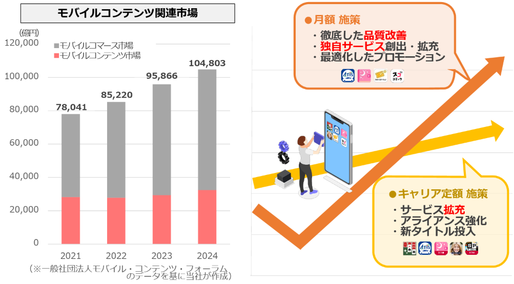 キャリア定額コンテンツは、サービス拡充、アライアンス強化、新タイトル投入により拡大を図る。