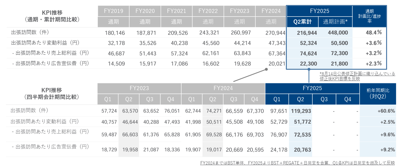 出張訪問数の伸び率(前年同期比)は、1Q+55.6%、2Q+60.6%。問い合わせ獲得が堅調に推移したことに加え、前期から取り組んでいる再訪問の獲得強化策が奏功。前四半期比較でも高い成長となった。再訪問の獲得増加および審査員の恒常的なスキル向上など営業支援強化などにより、出張訪問あたり売上総利益が引き続き高水準で推移した。2Q実績に鑑み、下期会社計画は見直されている。2Qでの仕入高は前年同期比+86.4%の4,502百万円まで積み上がっていることから、下期以降の更なる伸長に期待したい。