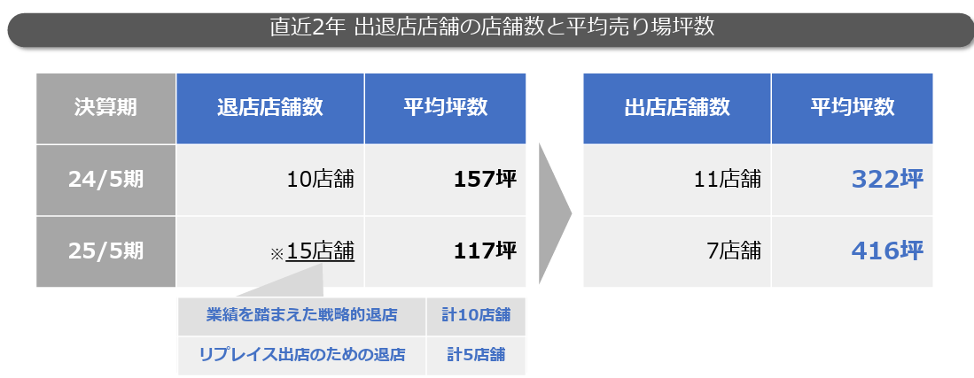 平均売場面積・店舗数 | 約300坪、67店舗 | 平均売場面積・店舗数 | 約40坪、5店舗 |