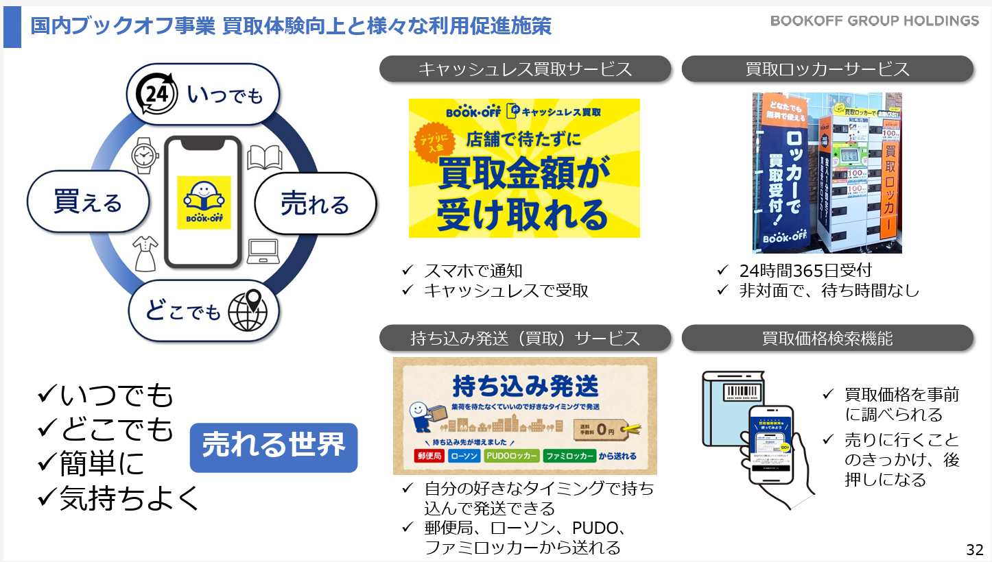 これに伴い、「BOOKOFF総合買取窓口」をECサイトと同様に、「Rehello(リハロ)」への名称変更を進めている。26年5月期中に「Rehello」ブランドへ屋号を統一する予定である。