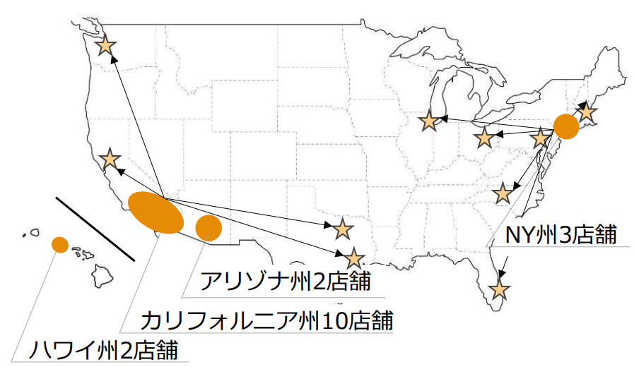 アメリカ東西海岸においてドミナント出店を続けることに加え、内陸部メガシティへの展開を進めていく。2025年5月期にアリゾナ州で2店舗目(PHOENIX店)を出店したのに続き、2026年5月期は、新たにテキサス州とミシガン州へ出店する予定だ。