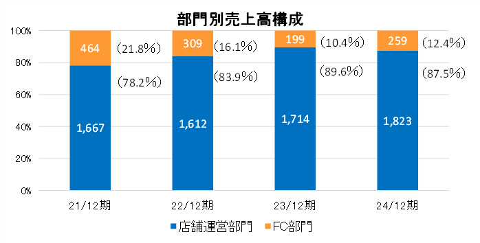 また多くの企業が成長(出店数増)のためにFCビジネスで事業展開しているが、同社は徹底したオペレーションの効率化とクオリティの統一化を追求した「全店舗一括管理運営方式」という他に類を見ない新たなFCビジネスの仕組みを構築している。(詳細は、「1-5 特長と強み」を参照。)