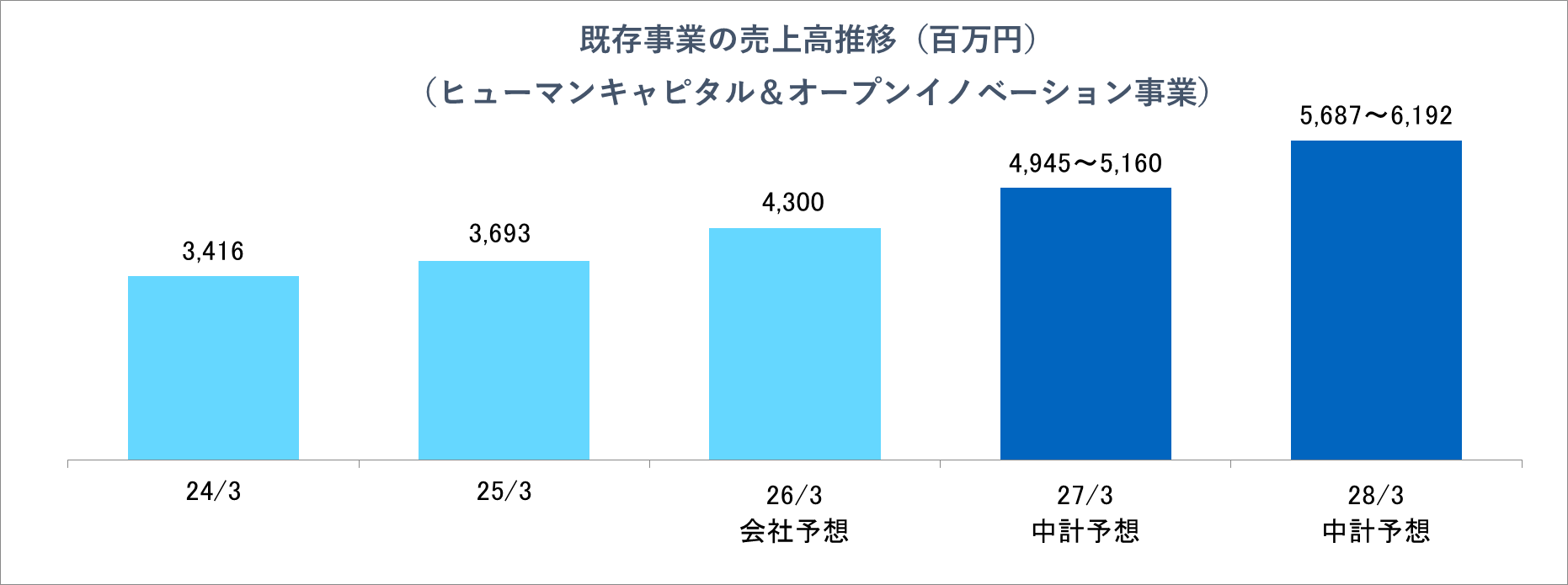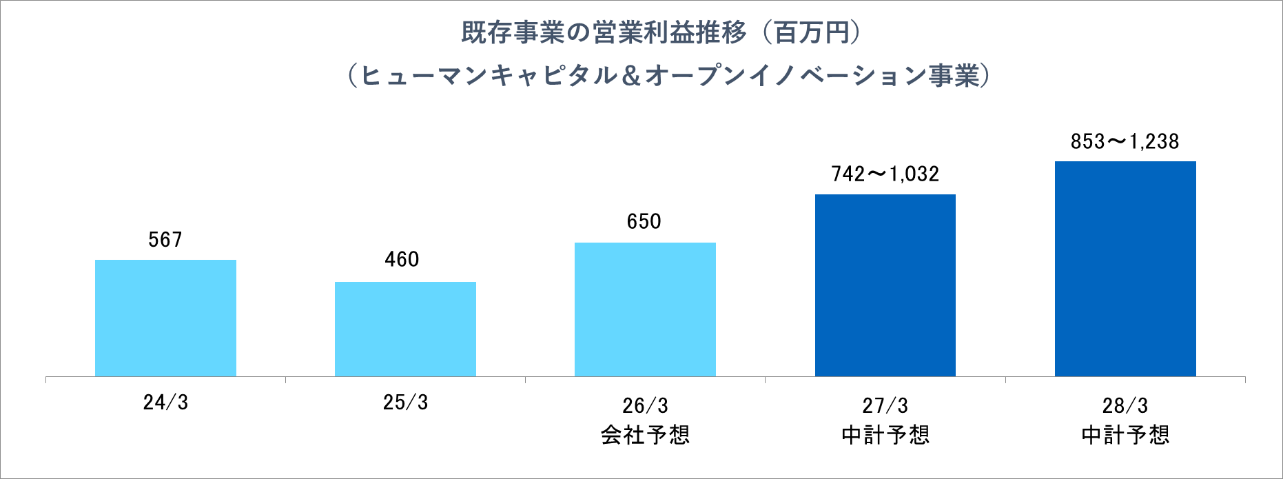 同社は、26/3期第1四半期より、スタートアップHRを核として領域を拡大する中期経営方針に基づき、タレントエージェンシーからヒューマンキャピタル名称変更しへ、「タレントエージェンシー&オープンイノベーション事業」を「ヒューマンキャピタル事業」と「オープンイノベーション事業」へ区分変更する。