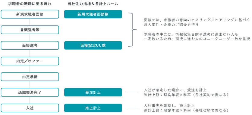 KPIとしては、同社がコントロールできる数値目標(新規求職者面談/面接設定UU数)の最大化を目指す。