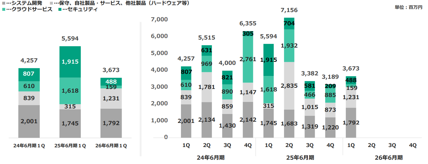 システム開発 | 3,479 | 3,359 | 6,838 | 2,670 | 3,760 | 6,430 | -6.0% |