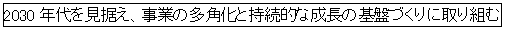 この3年間は、多角化に向けた収益基盤の強化期間と位置づけ、持続的な成長と変革を実現し、2030年に向けた事業拡大を目指す。