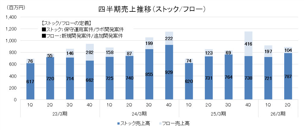 2Qの売上高は前期比において若干の減収ではあったものの、ストック売上は増収となっており事業基盤の構築は進展。