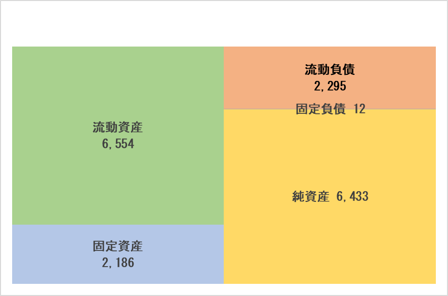 固定資産 | 2,187 | 2,186 | 負債・純資産合計 | 8,580 | 8,741 |