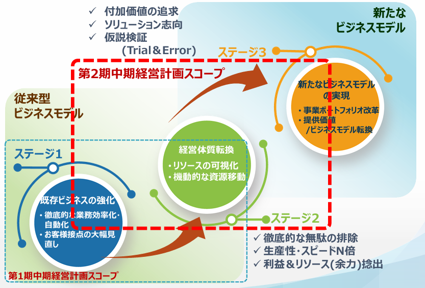 当社は、長期経営ビジョン及び中期経営計画において、長期経営ビジョン実現のための成長へのステップとして、人的資本及び知的財産への投資を含む経営資源の配分及び事業ポートフォリオに関する戦略を盛り込んでいます。
