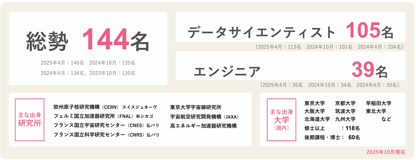 ●役職員183名(25年10月時点)のうち、144名、約8割がデータサイエンティストとエンジニアで構成される技術集団