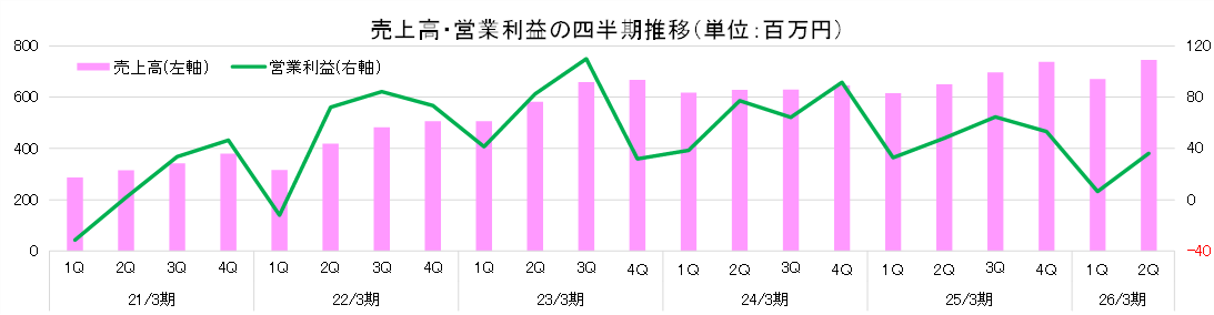 26/3期は売上高が前期比11.1%増の30億円、営業利益は同0.7%増の2億円を予想。上表の通り、期初の予想からは減額修正となった。配当は修正なく、前期と同じ10.00円/株の予定。予想配当性向は15.3%。