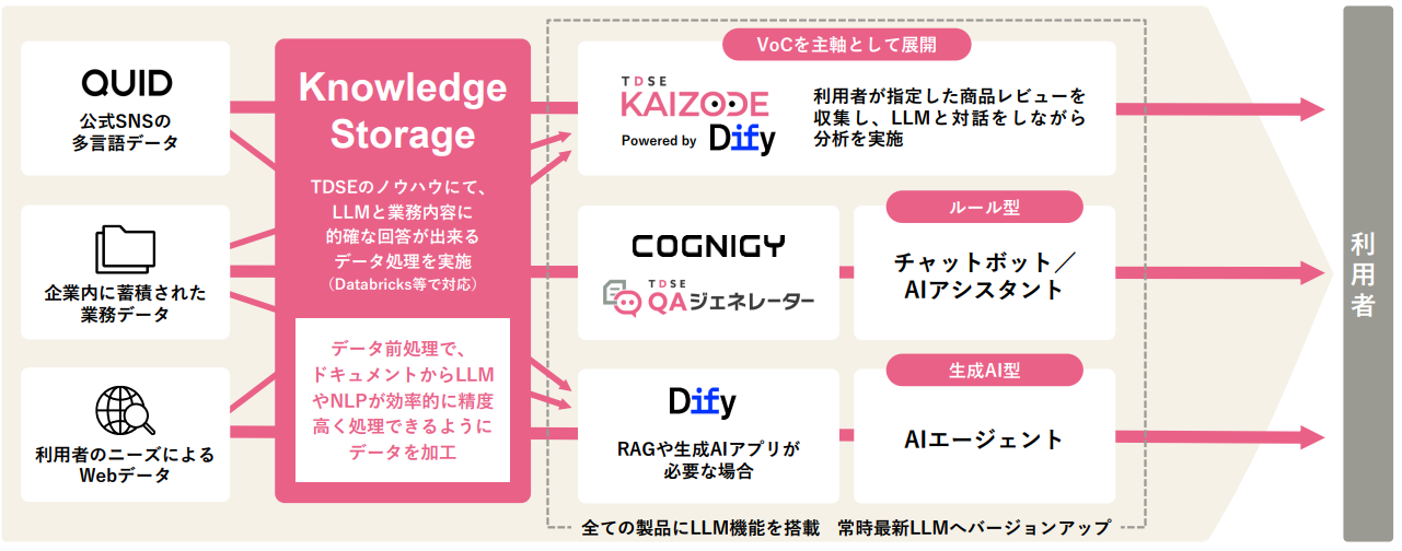 2024年には、生成AIアプリ構築プラットフォームである新製品「Dify」の提供を開始。