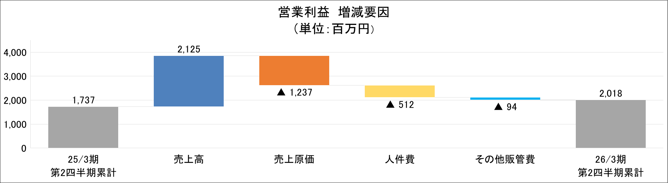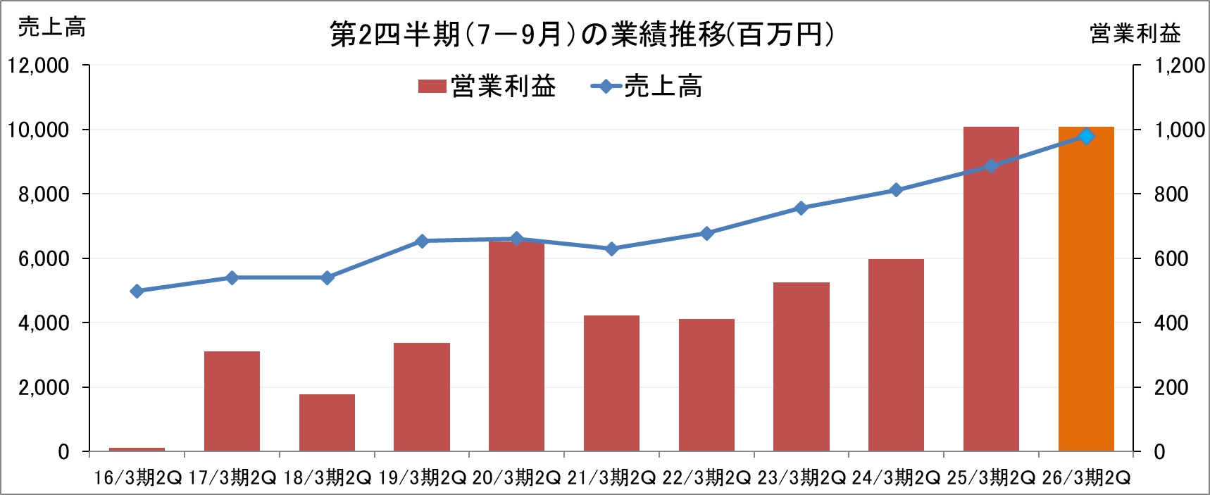 26/3期第2四半期(7-9月)は、前年同期比で増収ながらほぼ横這いの営業利益となった。従業員への還元の推進などが影響した。