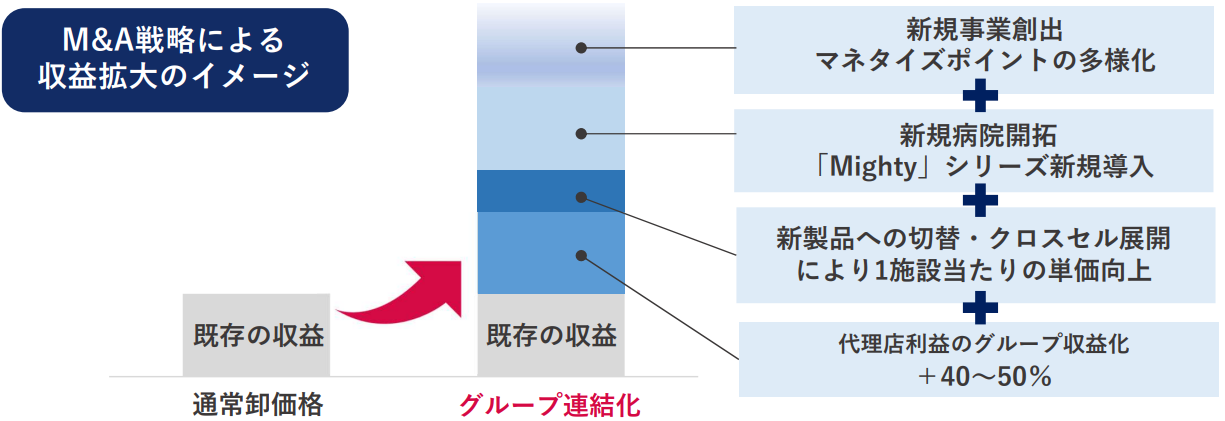 ・地域に根差した医療機関ネットワークを有する販売代理店を対象に、8~10社のM&Aを計画し、全国展開を推進する。