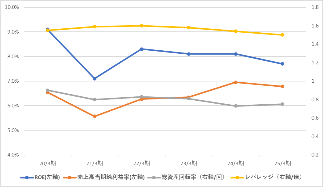 第9次中期経営計画では、自己資本利益率(ROE)は連結ベースで9~10%を目標としております。