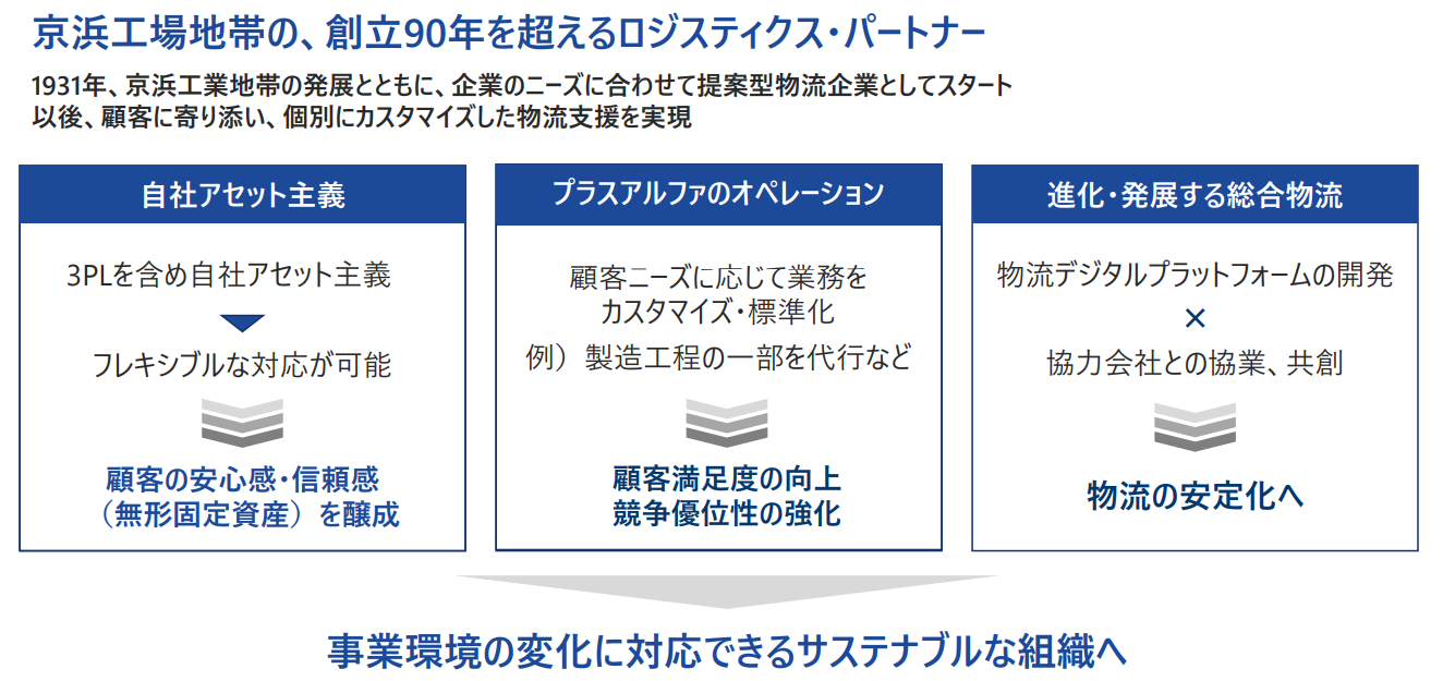 高品質なサービスを追求する同社は倉庫など施設を原則的に自社で保有していることに加え、トラックのドライバーの安全教育、構内作業の標準化等にも力を入れているため、顧客からの厚い信頼を得ている。