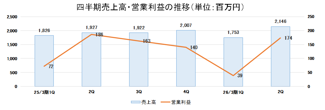 - 豊田社長に26/3期中間期決算の総括や今後の見通し、株主・投資家へのメッセージなどを伺った。「1Qは諸々の事情により業績が振るいませんでしたが、2Qは盛り返して四半期での売上高、粗利は過去最高を更新しました。今後とも実績をきっちりと説明していくとともに、3Q・通期で成長に戻ったことを示すべきだと思っています。足元では金利が上昇しておりますが、これは銀行の好業績につながるとともに、旺盛な設備投資欲が生ずることにより我々は恩恵を受けることになるでしょう。来期は中期計画最終年度でもあり、成長戦略をしっかりと結果に出していきたいと思います。」とのことだ。