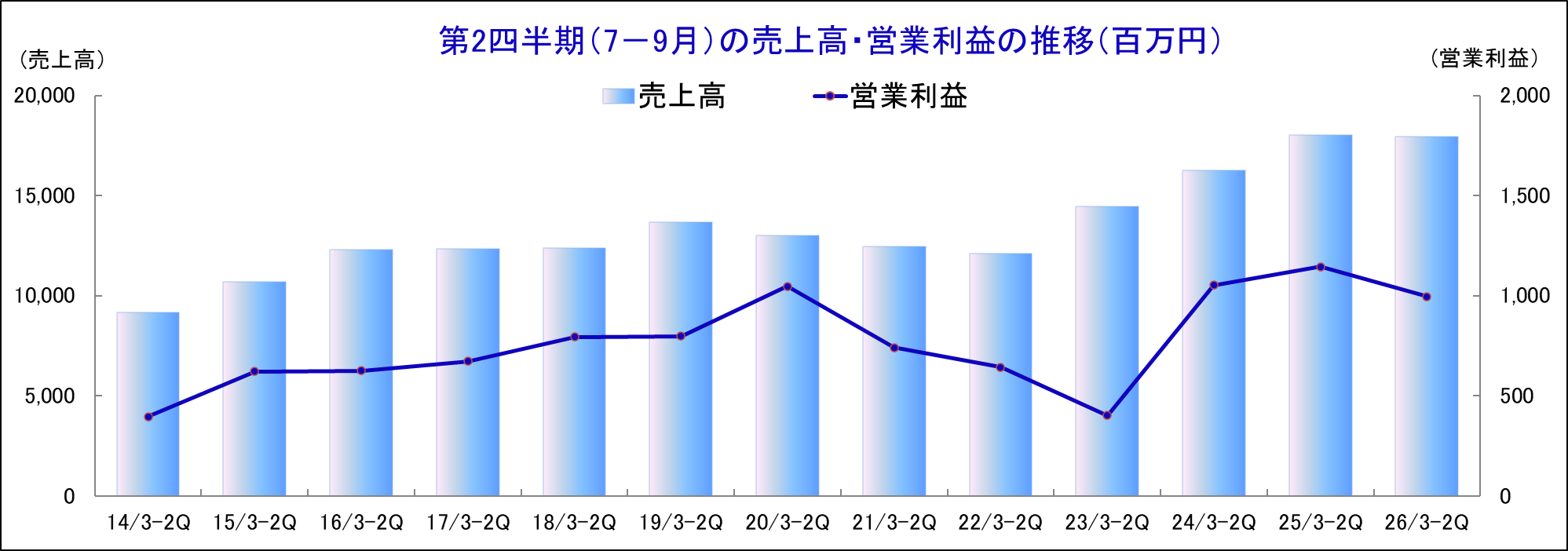 26/3期第2四半期(7-9月)は、過去の第2四半期と比較し、高水準の売上高と営業利益になったものの、事業拡大に伴う人員増強や情報処理費、地代家賃やのれんの償却費の増加の影響により前年同期比で営業減益となった。