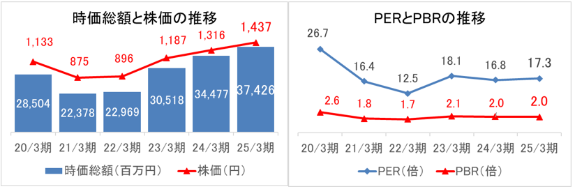 25/3期のROICは、可視化伴走型経営支援事業(アイコンサービスなど)が順調に進展したことなどによる営業利益の増加により前期比1.1ポイント上昇した。同社は、中小企業のESG経営支援の伴走型アドバイザーとして確固たる地位を確立すべく今後も投資を強化する方針である。それにより常時資本コストを上回る水準で資本収益性を維持し、継続的に向上することを目指す。
