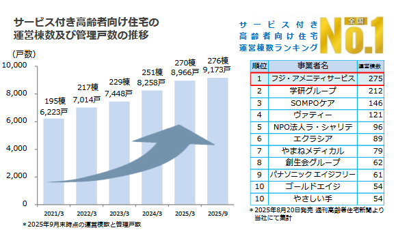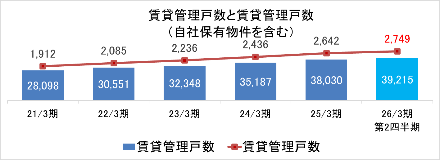 100%子会社フジ・アメニティサービス(株)が、賃貸アパートの建物管理や入居者募集、賃料回収等の管理業務及び分譲マンションの管理組合からの運営受託を展開し、サービス付き高齢者向け賃貸住宅は関西エリアのみの運営で全国トップクラスの運営棟数を誇っている。土地有効活用事業の建築請負や個人投資家向け一棟売賃貸アパート、分譲住宅事業の分譲マンションの販売引渡しが堅調に推移することでの相乗効果が高く、今期も引き続き堅調に推移し同社の長期安定収益基盤の要となる見通しである。