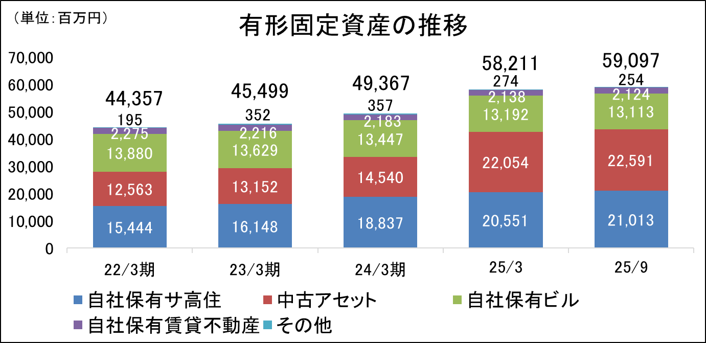 また、分譲住宅事業、住宅流通事業、土地有効活用事業、賃貸及び管理事業、建設関連事業からなる各事業が独自のノウハウを持ち、他の事業部門を相互に補完するバランス経営を推進するとともに、個人投資家向け一棟売賃貸アパート及びサービス付き高齢者向け住宅(以下「サ高住」)のサブリース事業を皮切りに、中古住宅アセット事業、サ高住自社保有事業と多角化を進め、景気動向に左右されないストック事業を拡大している。