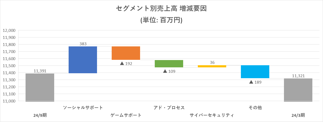 ゲームサポート | 1,578 | 13.9% | 1,386 | 12.2% | -12.2% |
