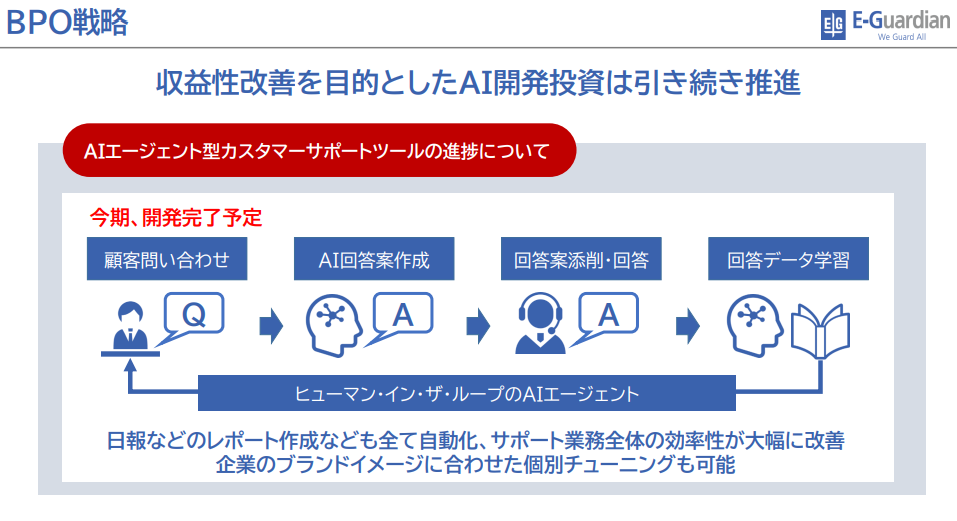 これまでの労働集約型事業モデルから「AI×人」システム新事業モデルへの転換を目指しており、今後の動向に注目したい。