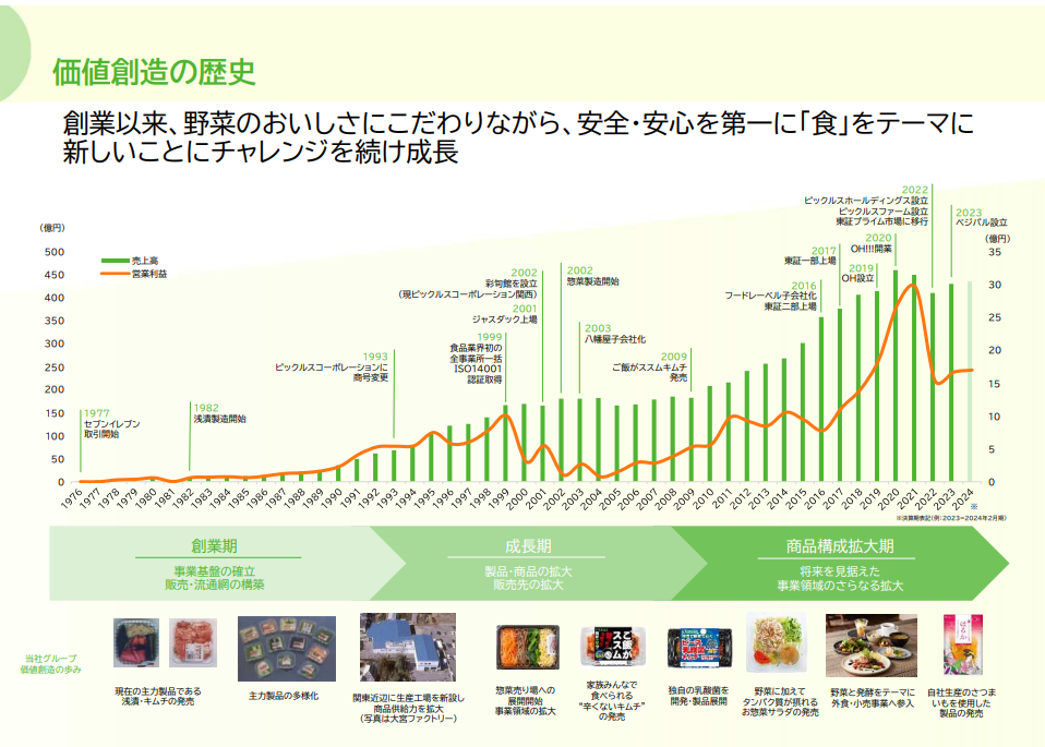 新規事業として、2020年より外食、小売事業を行っている。また、新たな取り組みとして2022年3月に(株)ピックルスファームを設立し、農業事業を展開している。2022年9月、持株会社体制に移行。