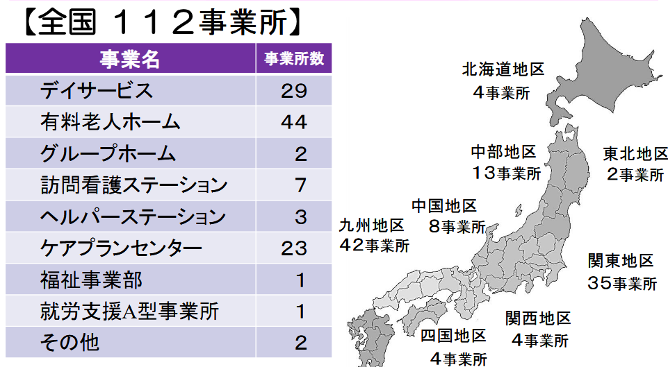 2025年9月30日時点において、112事業所を展開している。