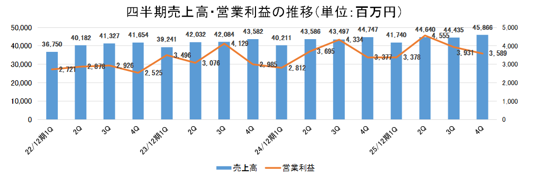 売上総利益 | 44,971 | 26.1% | 46,961 | 26.6% | +4.4% | - | - |