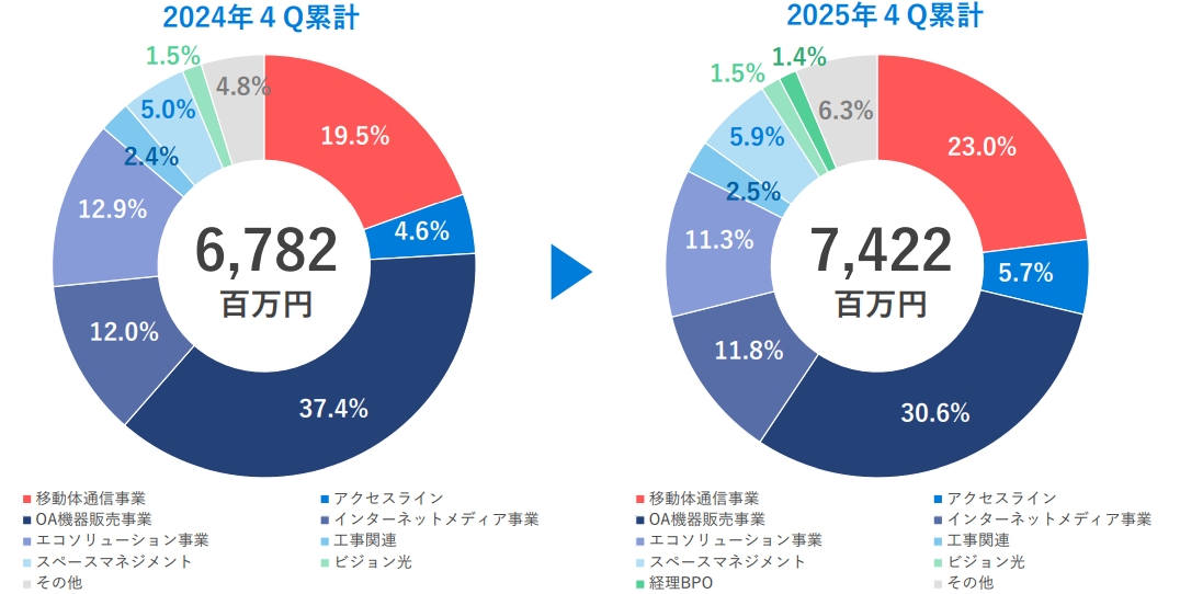 - 情報通信サービス事業は増収増益。販売チャネルの更なる強化を進め、事業の拡大に取り組んだ結果、移動体通信機器販売が好調に推移し。経理BPO事業も順調に推移している。また、将来的なアップセルやクロスセル、長期的な解約率の低減、ストック商材による継続的収入等ライフタイムバリューの最大化を図り、自社ストックサービスの拡販に努めた。