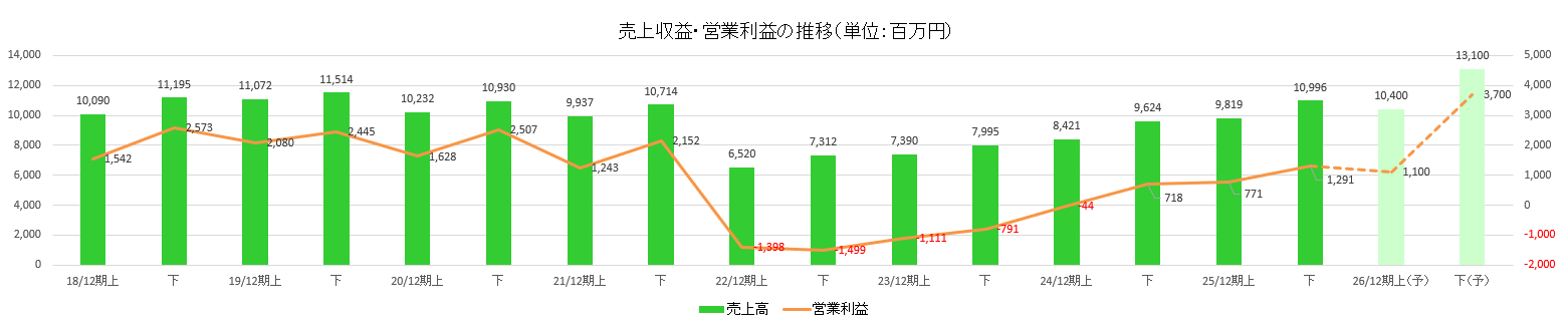 2026年12月(予) | 23,500 | 4,800 | 4,750 | 3,200 | 35.35 | 15.00 |